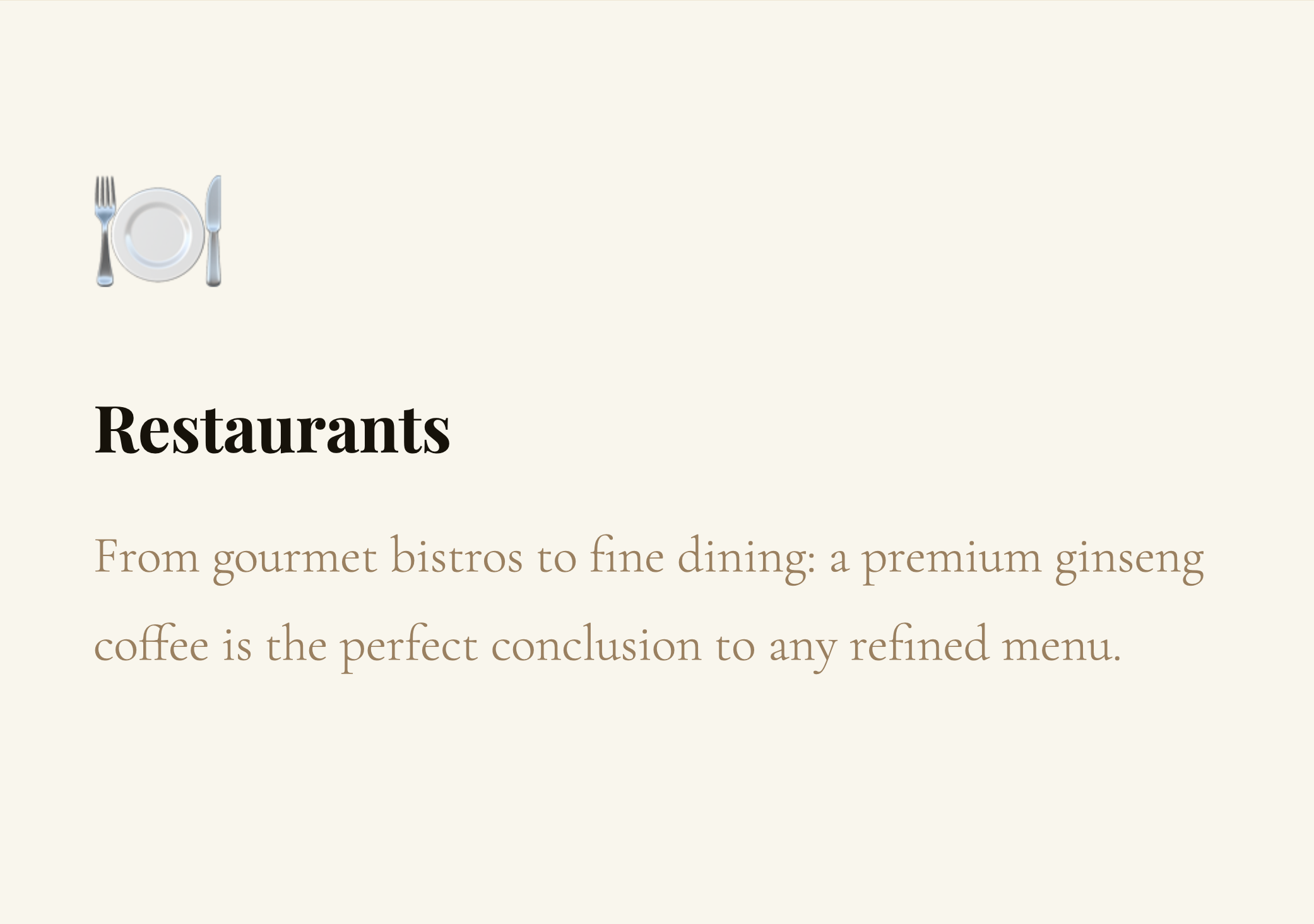 Unlike the sharp spikes of pure caffeine, ginseng provides steady, sustained energy — without the crash. A perfect ally for hospitality professionals.